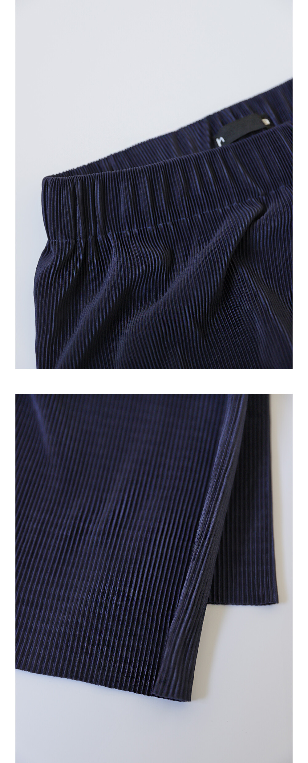 플리츠 가공된 원단으로 제작된 와이드 밴딩 팬츠입니다.