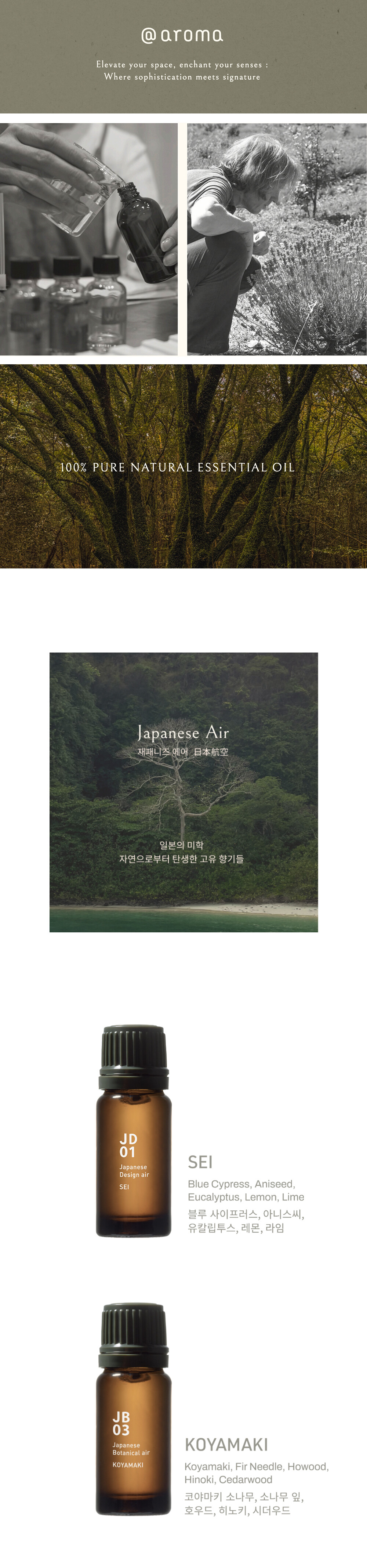 재패니즈 디자인 에어는 앳아로마 향의 이름이자 일본어 단어인 미야비(우아함), 이키(세련미)를 간직한 일본의 미학을 향으로 표현한 오일 컬렉션입니다.