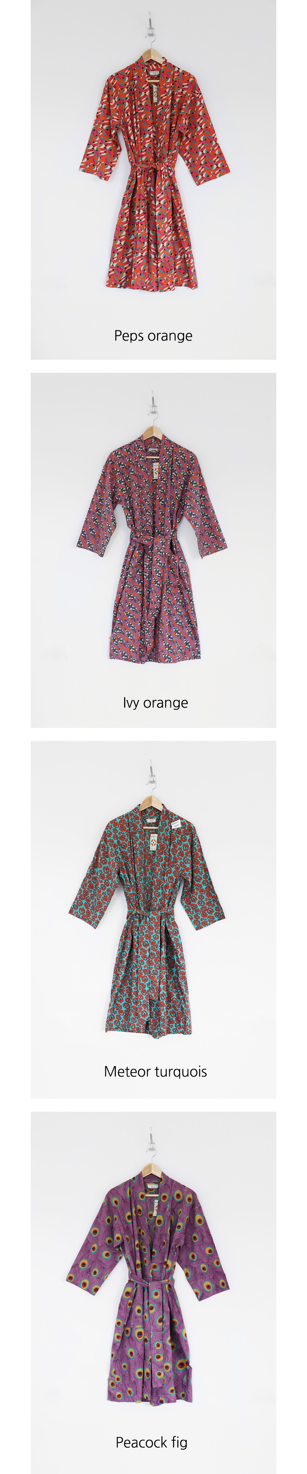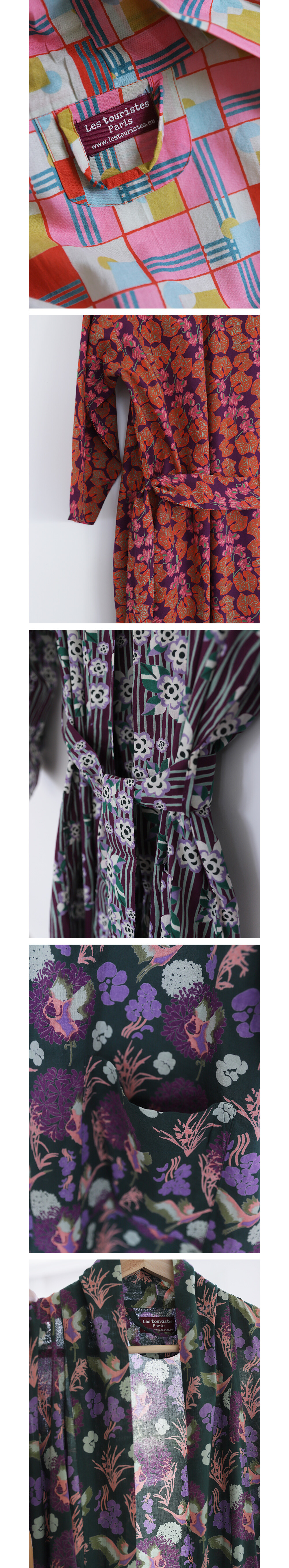 시즌별로 여행을 주제로 컬렉션을 선보이는 프랑스브랜드 le touristes 의 패턴이 매력적인 하프기장의 로브 입니다.